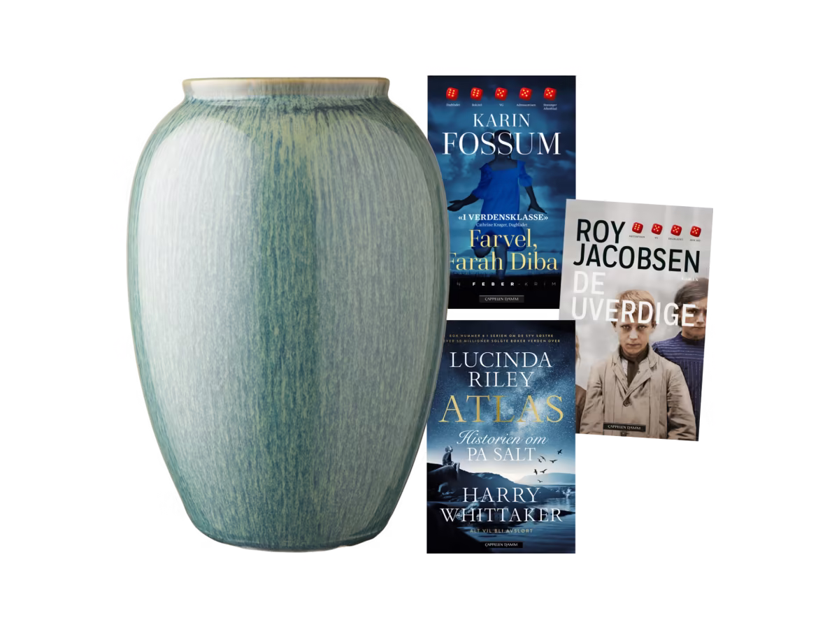 Nye medlemmer av Bestselgerklubben får nå denne flotte vasen fra Bitz og 3 valgfrie bøker i velkomstgave. Lekker vase fra Bitz i steintøy, med blank, reaktiv glasur.