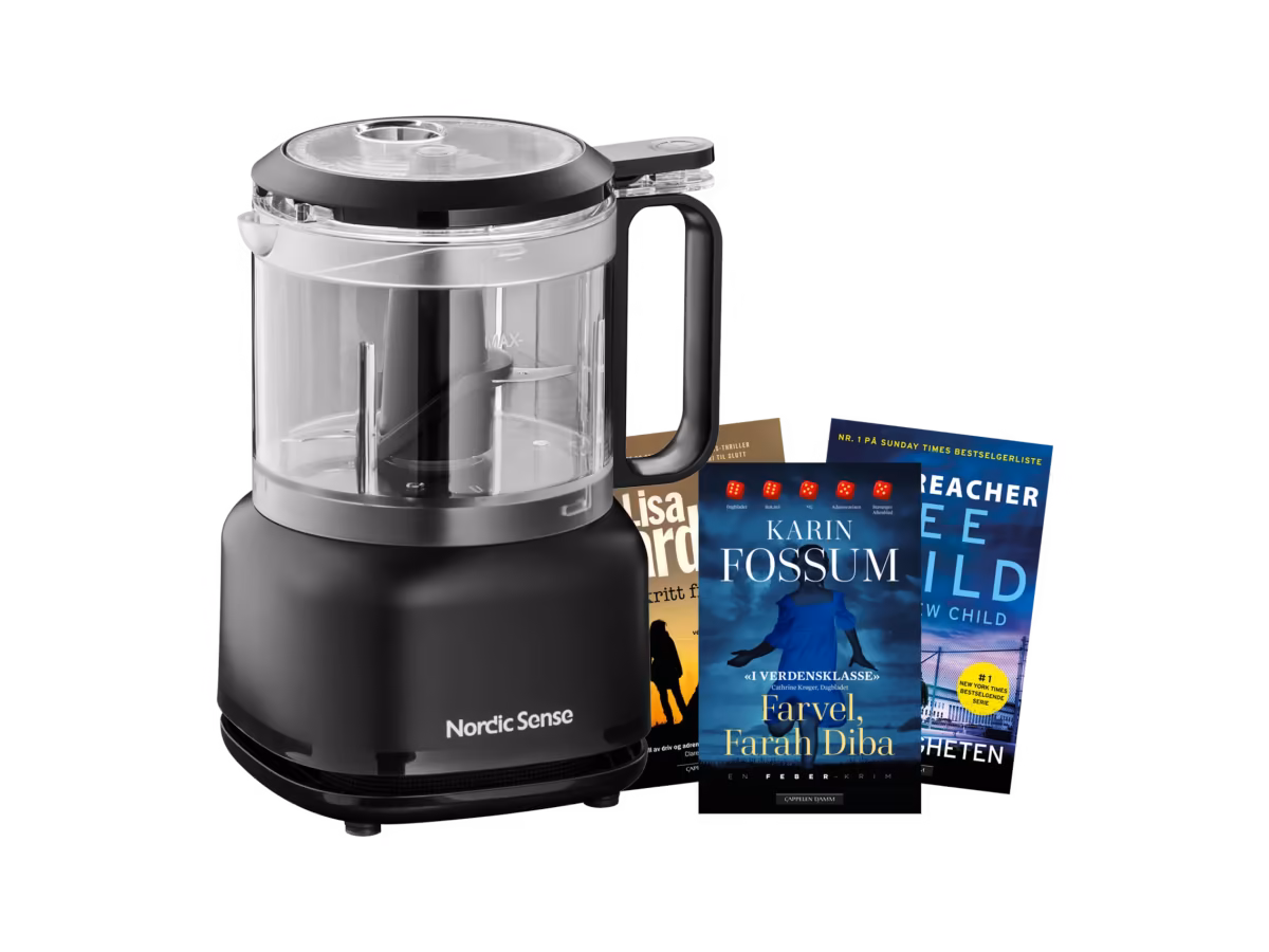 Nye medlemmer av Krimklubben får nå en Nordic Sense minihakker og 3 valgfrie krimbøker i velkomstgave. Kompakt og kraftig minihakker med 500 ml bolle – ideell til små og raske kjøkkenoppgaver.