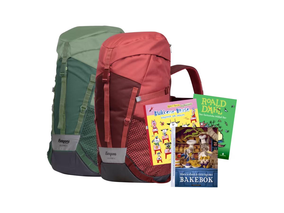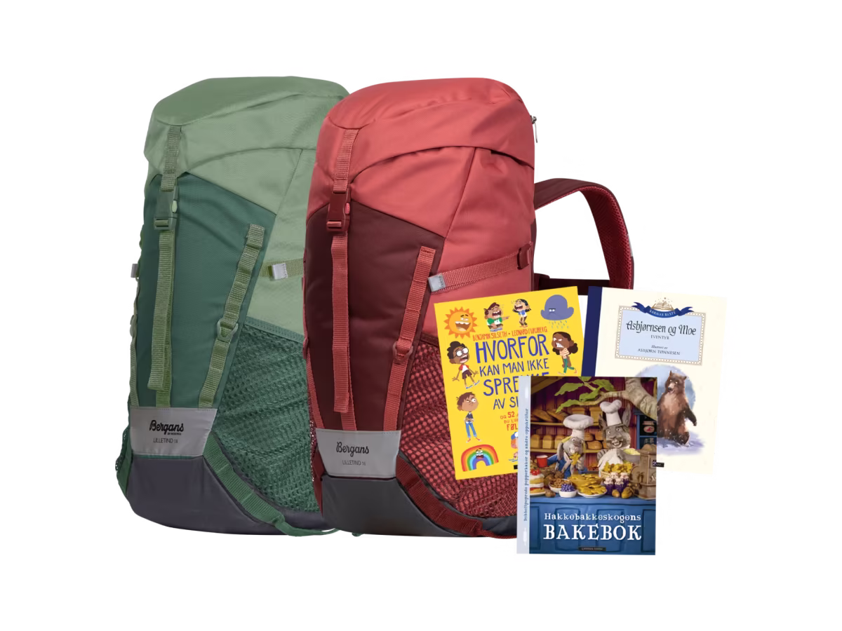 Nye medlemmer av Barnas Egen Bokverden får en Bergans Lilletind 18-barnesekk og 3 valgfrie barnebøker som velkomstgave. Lilletind 18 er en allsidig og brukervennlig dagstursekk, spesielt designet for små eventyrere som elsker å utforske verden. Gi barnet ditt den ultimate følgesvennen for eventyr og oppdagelser.