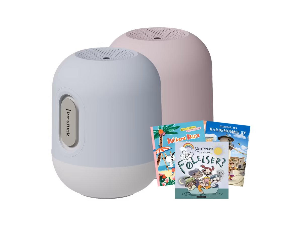 Nye medlemmer av Barnas Egen Bokverden får nå en Kreafunk Glowie høyttaler med bluetooth og flotte barnebøker i velkomstgave. Høyttaleren har integrert søvnlydfunksjon som hjelper de minste med å finne roen, samt dimbar nattbelysning som skaper en beroligende og trygg atmosfære for barnet gjennom natten.